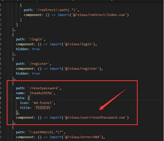 7.配置路由:src/router/index.js中手动本地配置路由。