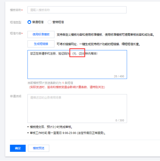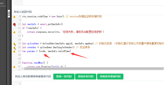10.注意事项:发送短信接口-参数的配置需根据自生模板配置而定。如果你的模板有两个参数则发送短信的接口中的params数组里需要放两个值。